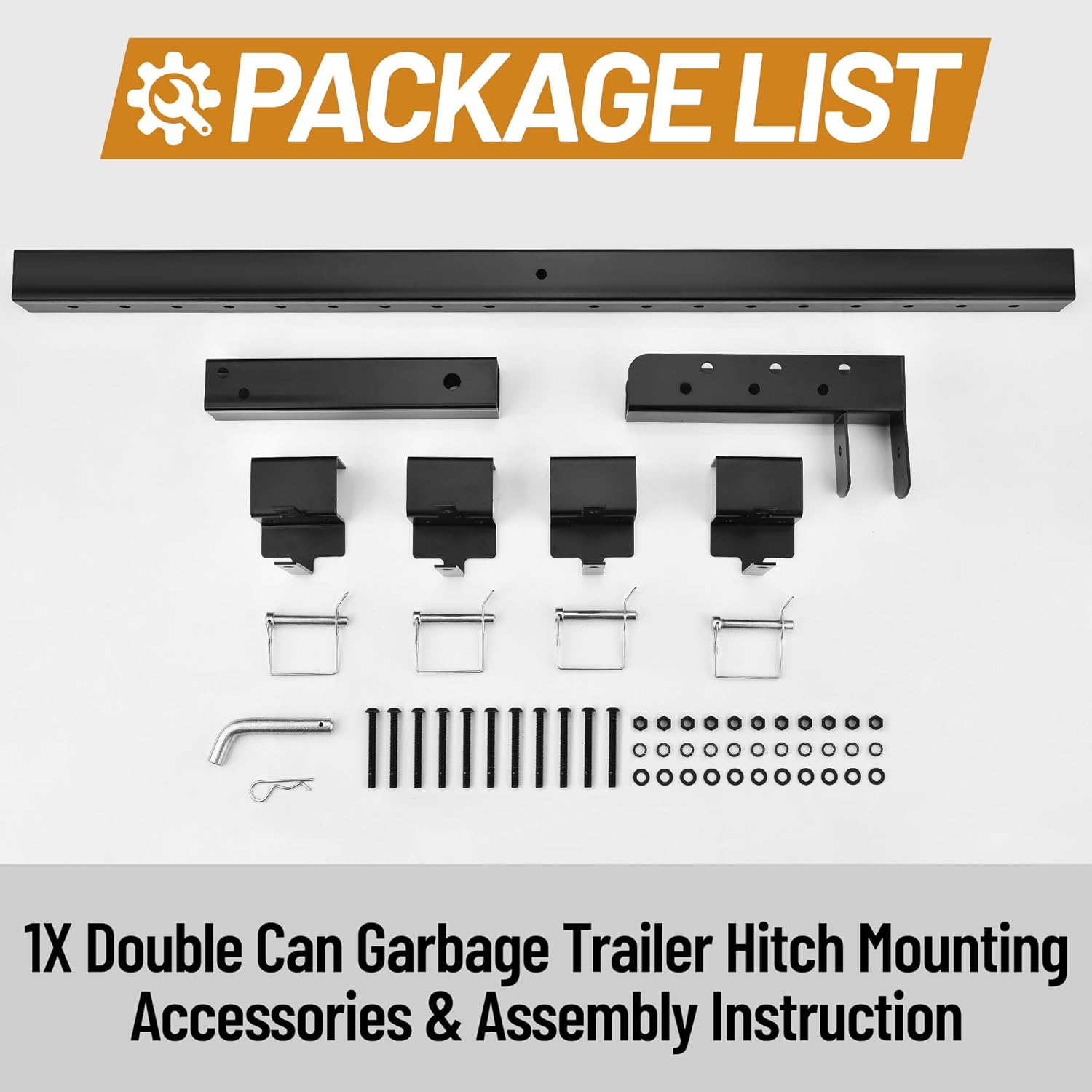 Heavy-Duty Dual Trash Can Hauler, 2' Receiver Wheeled Hitch for Easy Outdoor Transport Fit Truck Golf Cart ATV