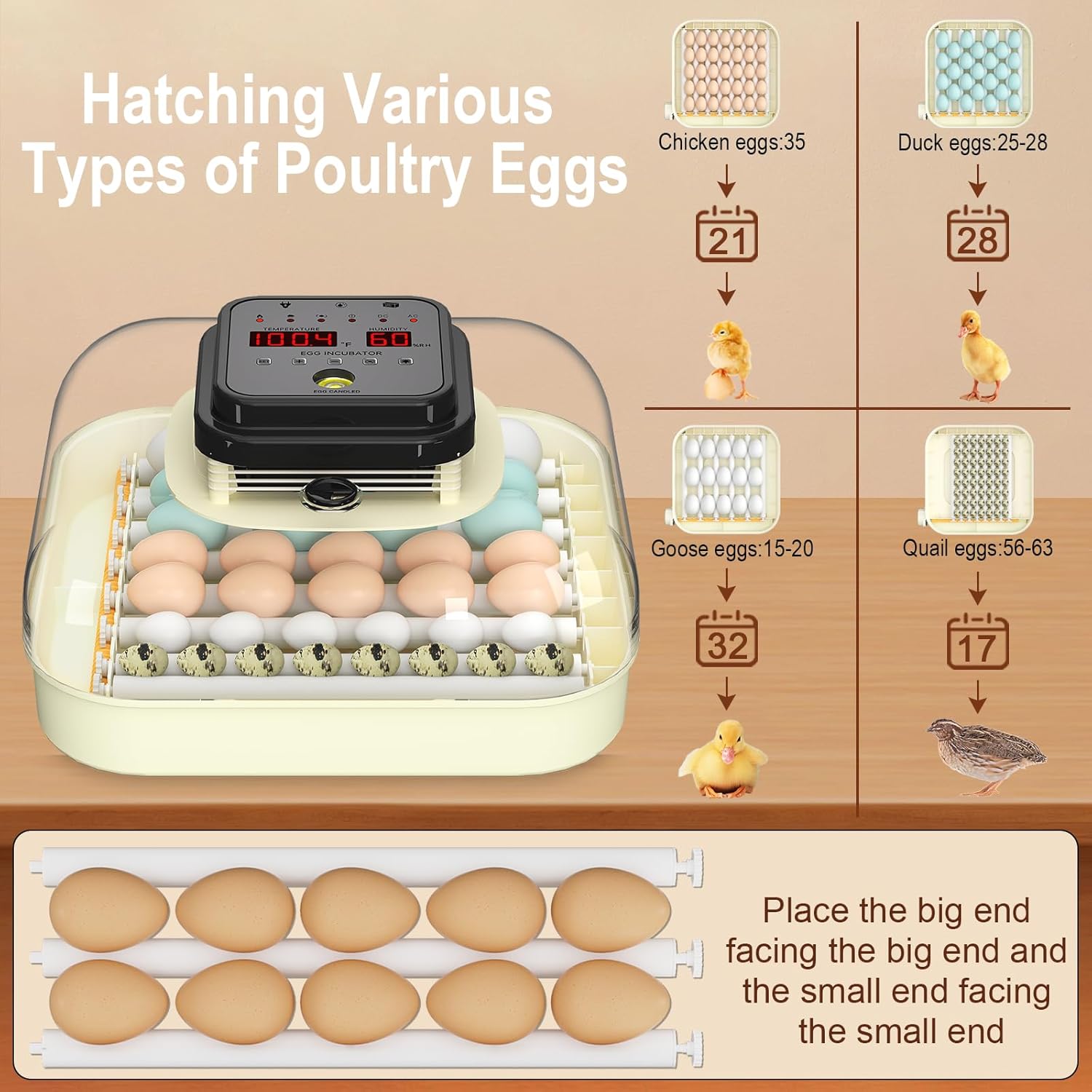 Incubators for Hatching Eggs, 35 Eggs Incubator with Auto Egg Turning and Humidity Control, with Egg Candler