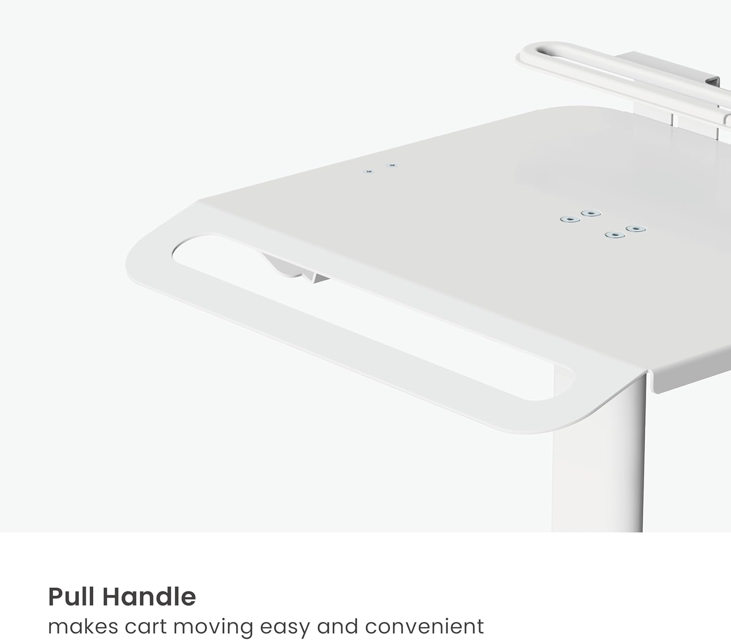 MEDICAL TROLLEY: The medical cart is suitable use in hospitals, clinical, laboratories, dental office, health services, beauty salon and other work places. It is easy to adjust the height of the monitor and tabletop for keyboard and laptop (16.1\'x13.4\') by handle to meet your needs for standing up desk work or different scenes and usages
