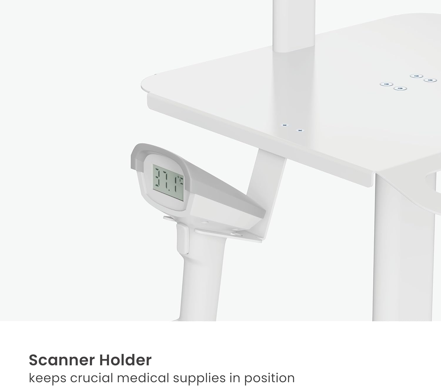 Height Adjustable, Lightweight, Anti-Theft, Anti-Slip Medical Laptop Workstation Trolley w/ Scanner Holder