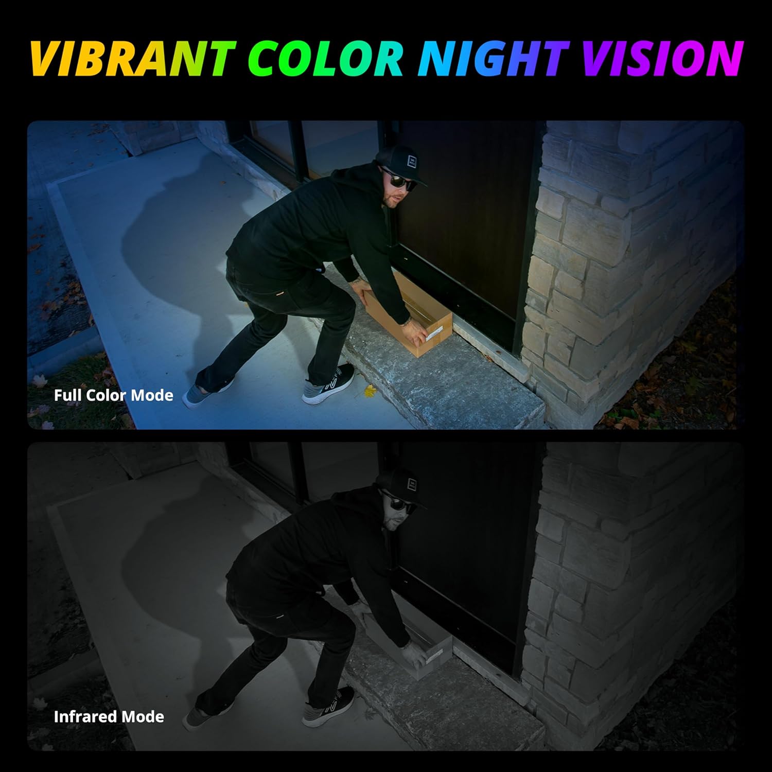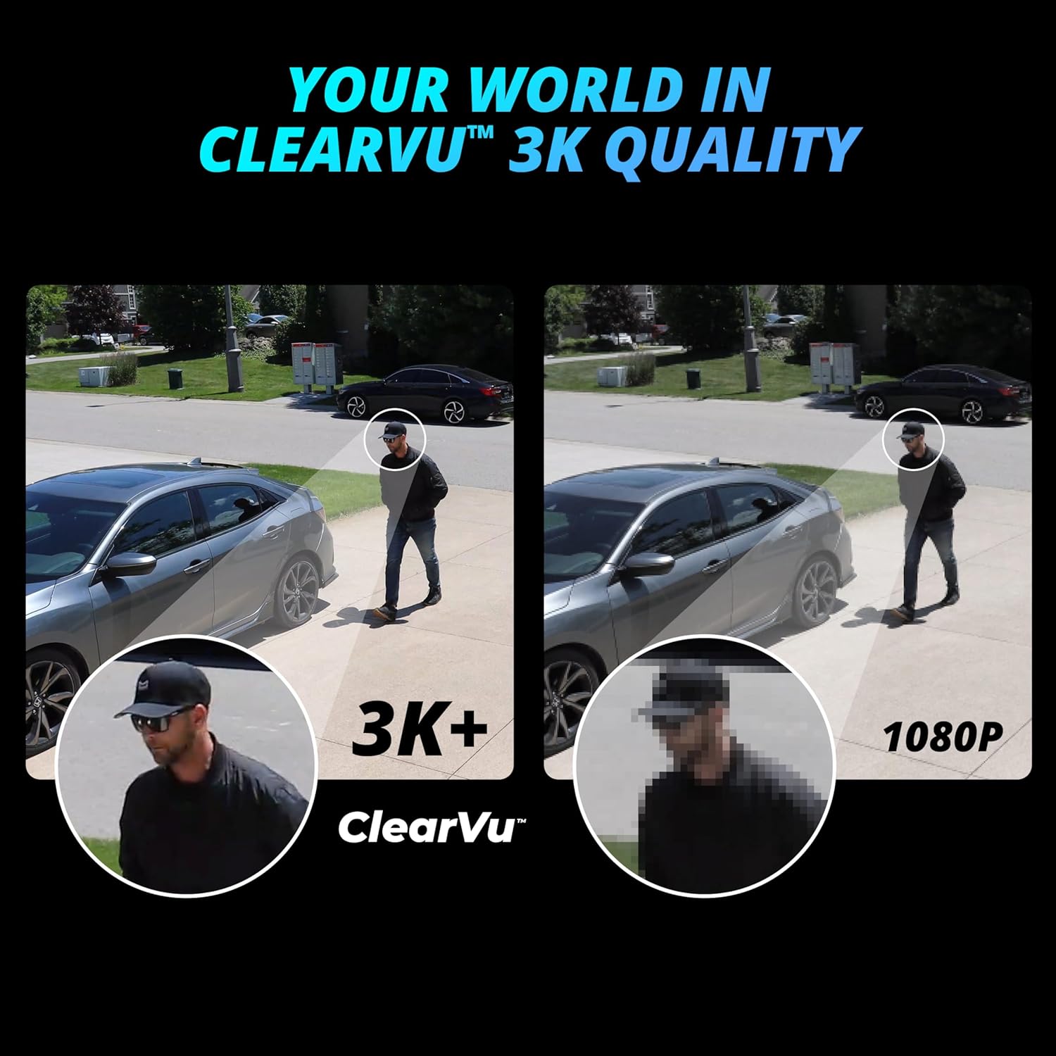 CRYSTAL CLEAR 3K+ RESOLUTION: The Defender 3K+ Tri-Lens camera features an incredible 3K+ resolution, offering vibrant and detailed footage of your property. Equipped with an 8x zoom and color night vision, this outdoor camera ensures high-definition visuals even in low-light conditions. Whether it`s day or night, this security camera captures every crucial detail. This outdoor security camera wireless provides you with crystal-clear footage no matter the time of day or weather.