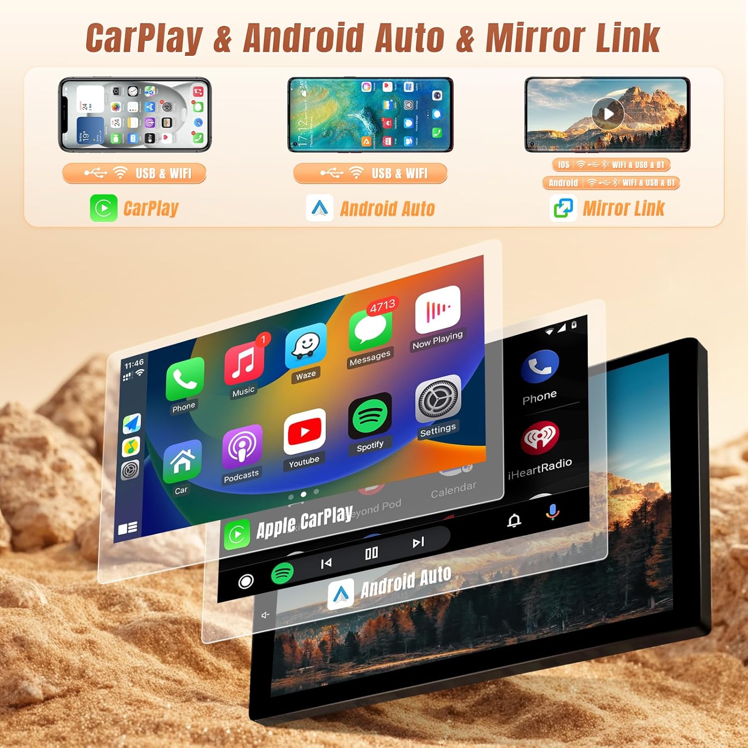 Wireless Carplay & Android Auto & MirrorlinkFor 2009 sequoia head unit radio, with smart way to use your phone, simply connect your iPhone/Android phone to the android car radio via Bluetooth. Use smart voice assistant or touch the display, you can get directions, make calls, send and receive messages, and enjoy music etc. A smarter, safer and more fun way to use your phone in the car, and keep you stay focused, connected and entertained