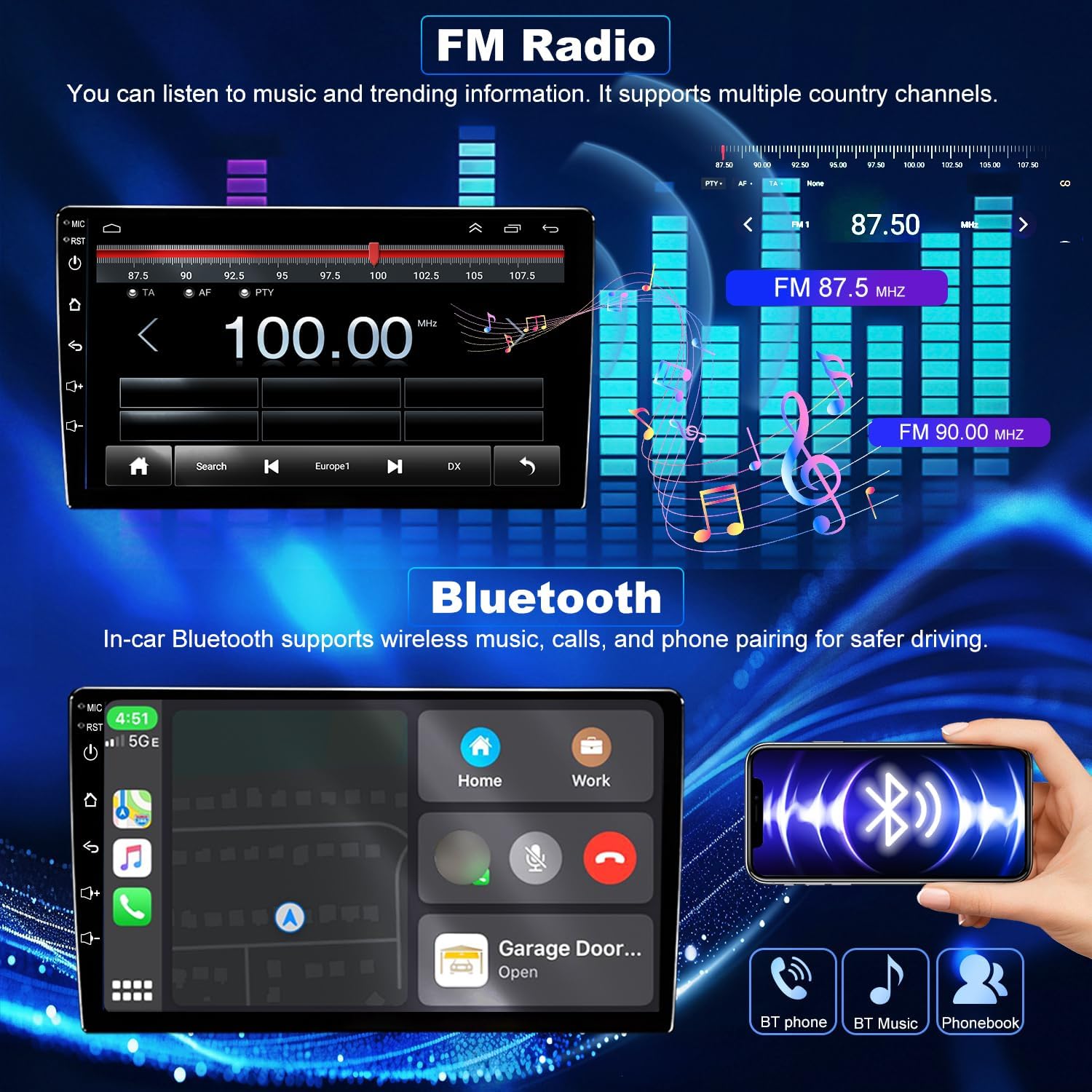 Built-in Bluetooth & FM RadioUpgrade your toyota tacoma setero & 2005-2015 Toyota Tacoma radio with built-in Bluetooth and FM tuner. Experience smooth hands-free communication and wireless music streaming with high-quality sound. The FM radio’s 18 presets make it easy to enjoy your favorite stations on every trip
