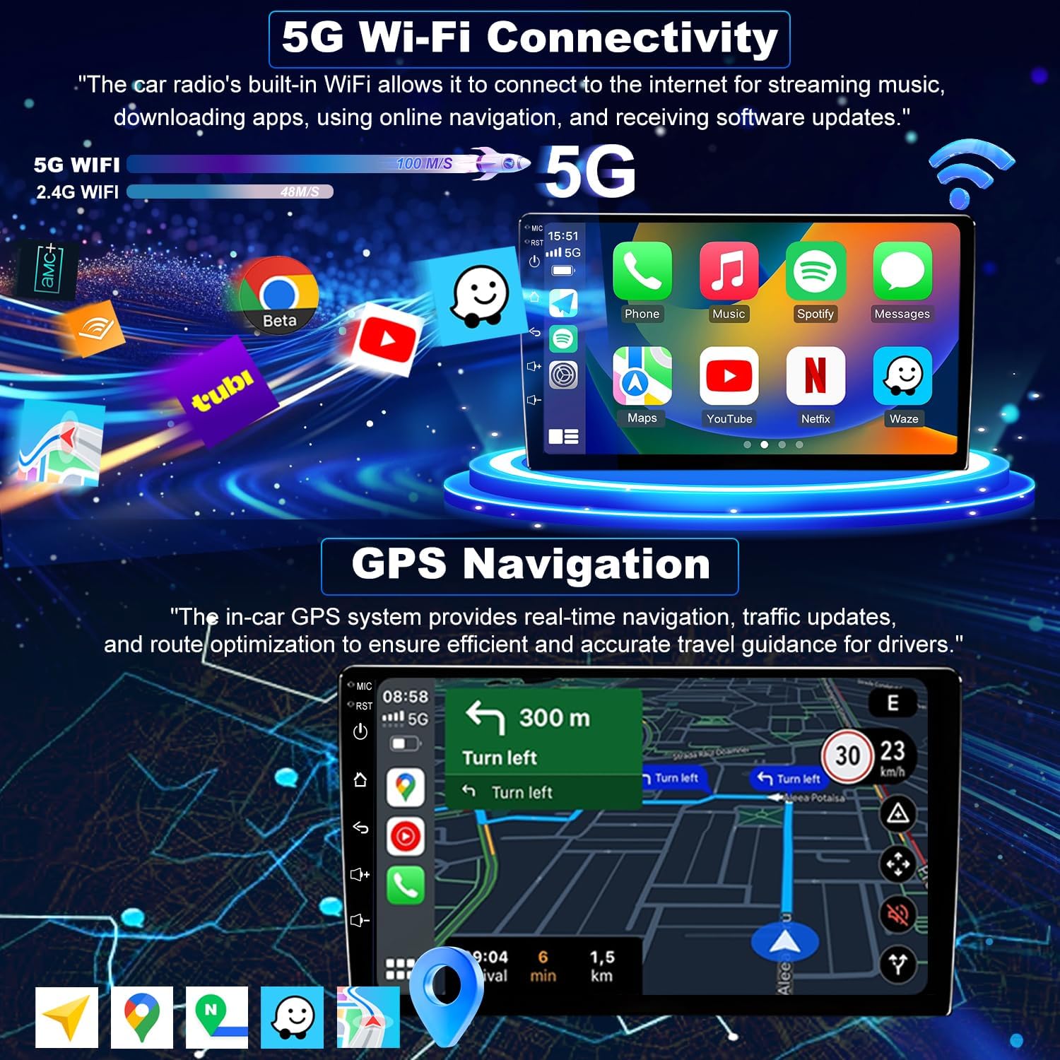 GPS Navigation & Faster 5GWiFi Connect Equipped with built-in GPS and 5G WiFi, this toyota tacoma setero car audio & Tacoma setero 2005-2015 ensures real-time navigation and uninterrupted streaming. Enjoy offline maps when off-grid or use Google Maps and Waze for accurate routes on every city or highway drive