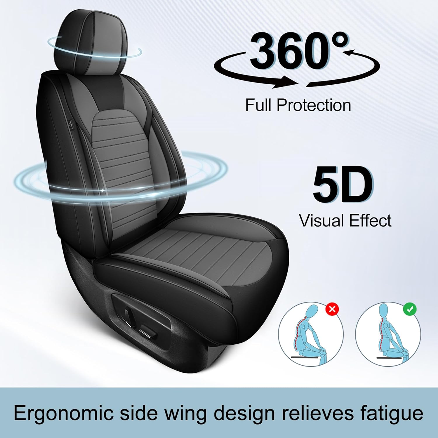 Design Upgrade: The inner layer of the waterproof seat cover is made of high-resilience thick foam to provide excellent support for your back and hips, and the overall design of the seat cover side wings is inspired by ergonomic principles, effectively relieving driving fatigue.