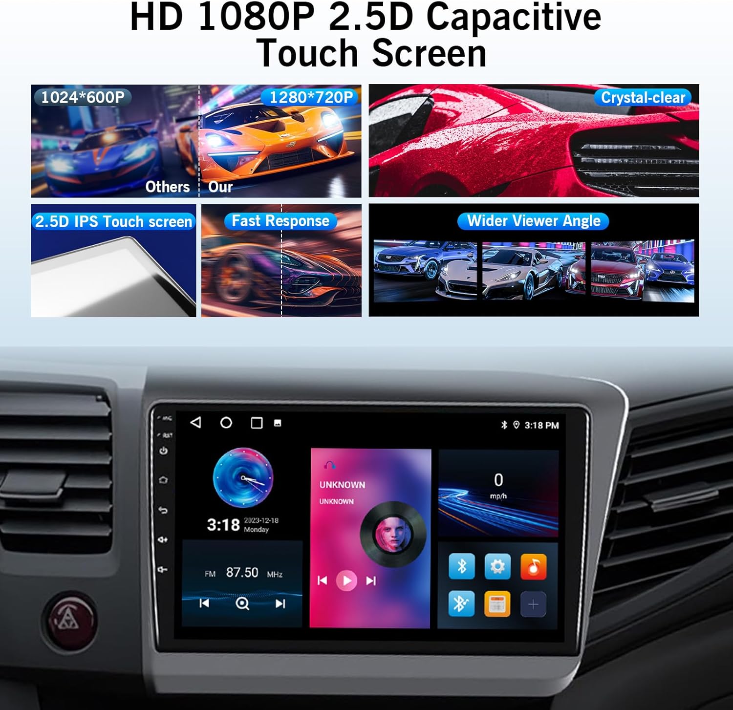 9 Inch Car Stereo with 1280*720 IPS Touchscreen, AHD Night Vision Backup Camera & Steering Wheel Control: Honda Civic 2012-2015 car stereo supports rear camera video input, making your reversing & parking easier. Support original steering wheel control, allowing you to use and control the car radio via steering wheel (Backup Camera Included)