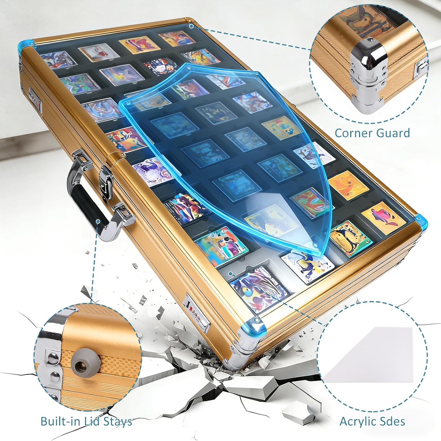 MULTI-SIZE CARD SLOTS Built-in two sizes of card slots that adapt to various card dimensions, effectively preventing cards from scattering when carried around and perfectly protecting your precious display items