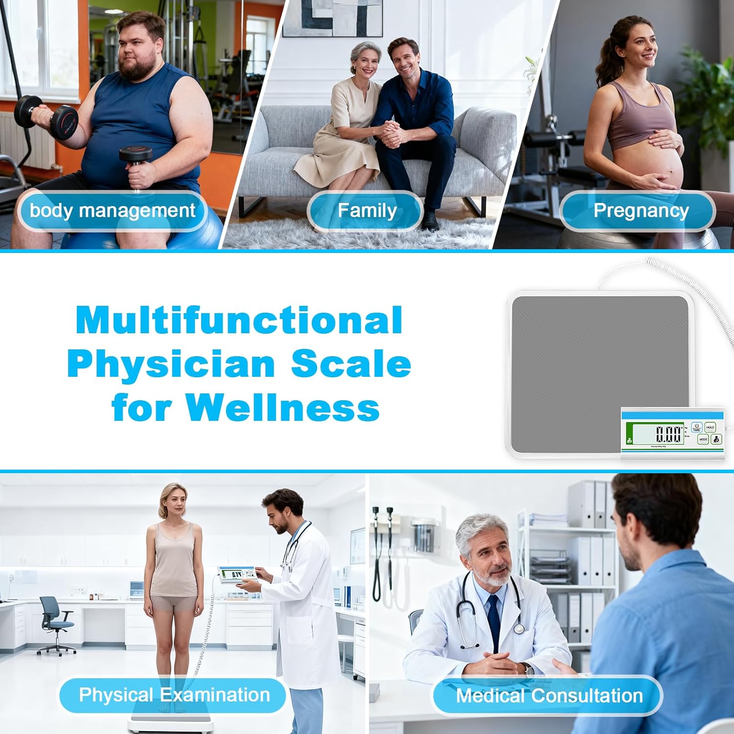 Lightweight & Portable: The bariatric scale is lightweight for easy carrying. Its data display can be held in hand or mounted on the wall. The non-slip rubber base of the body scale makes it highly suitable for use in offices, weight loss centers, gyms, homes, hospitals, clinics and schools.