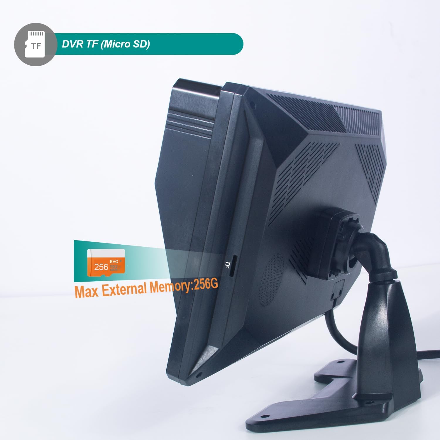 **Loop Recording with Password Protection** – Built-in DVR supports 32G-128G TF cards (card not included). Automatically overwrites old footage for continuous recording, and a password lock safeguards your video data.