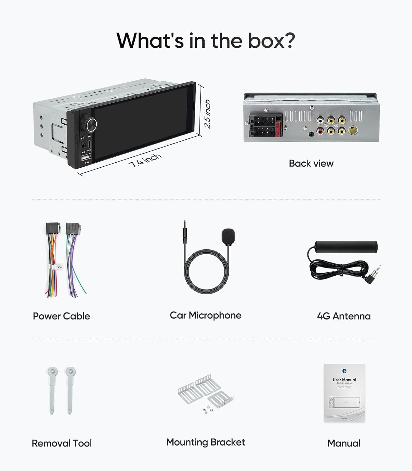 Universal Size + Aluminum Alloy BracketThis Car stereo Compatible with 7.36*2.4 inches standard single din original car radio installation position with strong versatility; equipped with aluminum alloy mounting bracket, which is sturdy, durable, more stable in installation and not easy to loose.