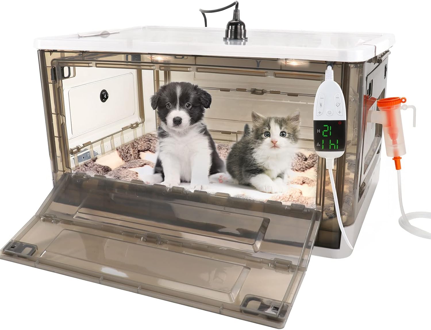 Spacious & Transparent Design for Full VisibilityWith a large 85L interior (23\'x17\'x14\') and a transparent Puppy Incubator, you can easily observe your pet’s condition at any time. The easy-to-clean materials are odor-free and safe for sensitive newborn animals, ensuring a hygienic and stress-free environment.