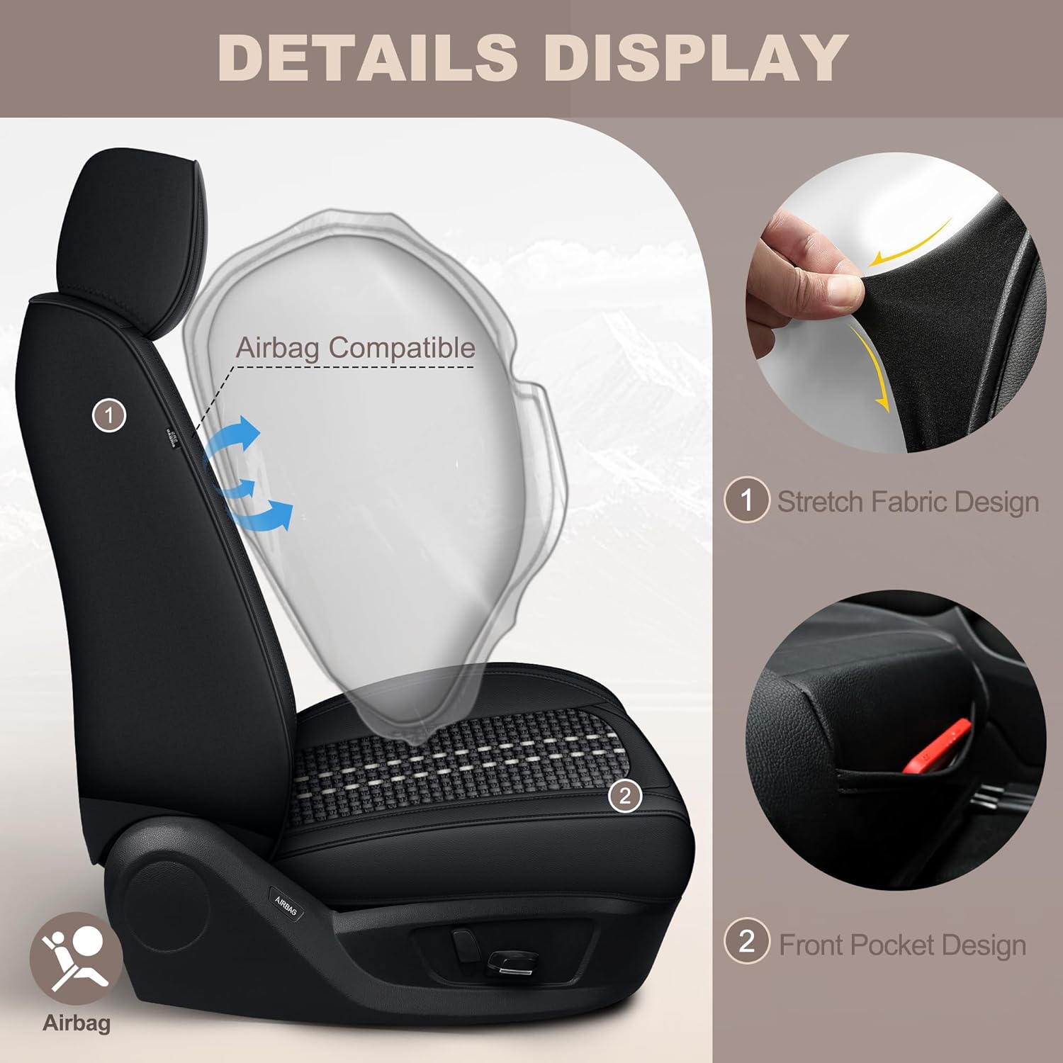 COMPATIBLE AIRBAGSCar Seat Covers Front seats Won’T Hinder Airbag Deployment In Emergencies, Keeping You Safe. Precision-Cut To Align With Airbag Zones, Our Leather Seat Covers Inflate Freely When In Dangerous Moments. Our Truck Seat Covers Keep You Fully Safe.