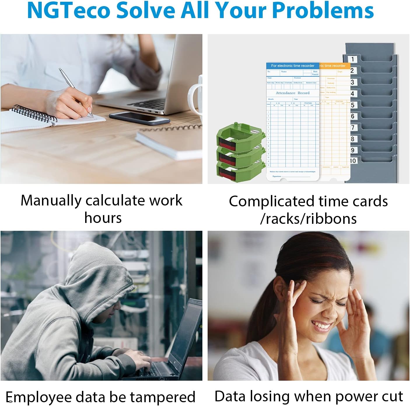Built-in Data Protection: An integrated backup system safeguards all attendance records during unexpected power loss. Your timesheet data remains secure and readily recoverable, minimizing disruption and manual recovery efforts.