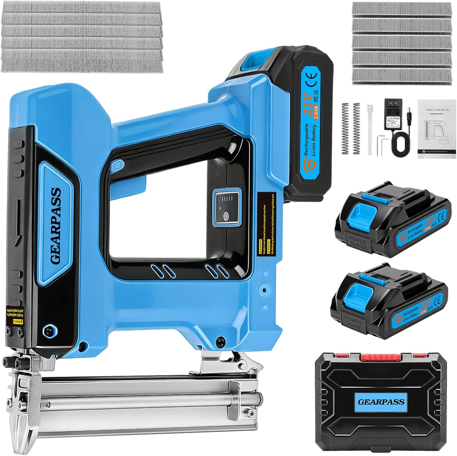 2-in-1 Brad nailerGEARPASS cordless brad nailer is a 2-in-1 cordless nail gun that can drive 18GA brad nails (3/4\' to 2\') and 18GA staples (3/4\' to 1-5/8\'). With 500 Brad nails (3/4\' to 1-1/2\') and 500 staples (3/4\' to 1-1/4\'), it can be a versatile tool for various woodworking and home repair projects.