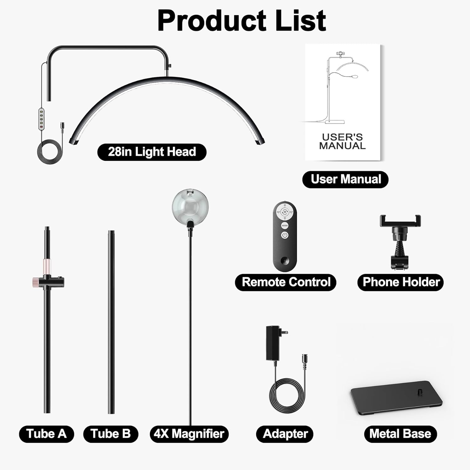 28' Half Moon Lash Light - Lash Lamp with 4X Magnifier & Phone Holder, Esthetician Light, for Eyelash Extensions,Nail