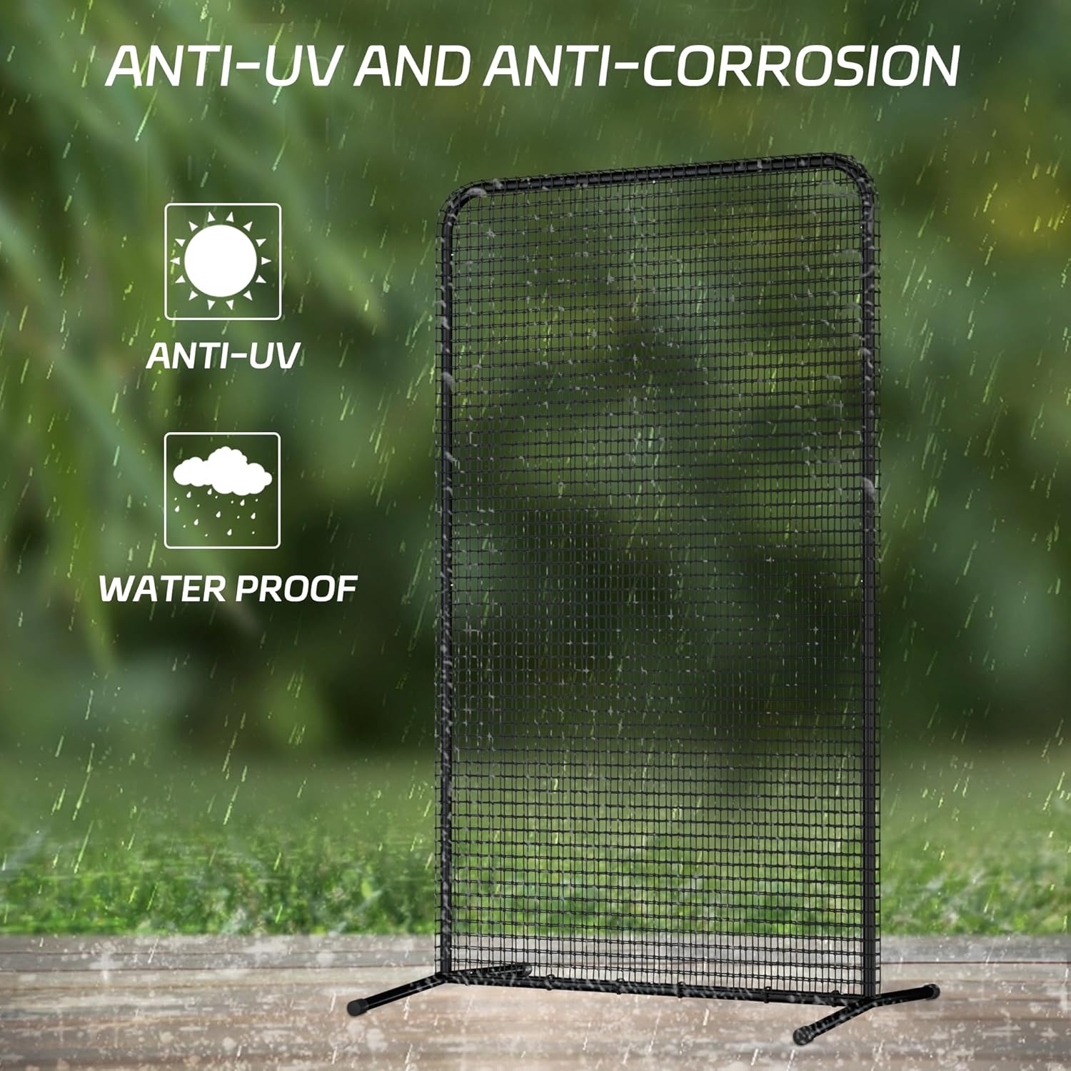 PREMIUN MATERIAL - For better strength and durability, our baseball Pitching Screen features long lasting 5ply polyester net which can bear a stronger batting impact. Engineered using 1.5in diameter steel tube make the structure even more durable and longer service life. Powder-coating for excellent rust-resistance.