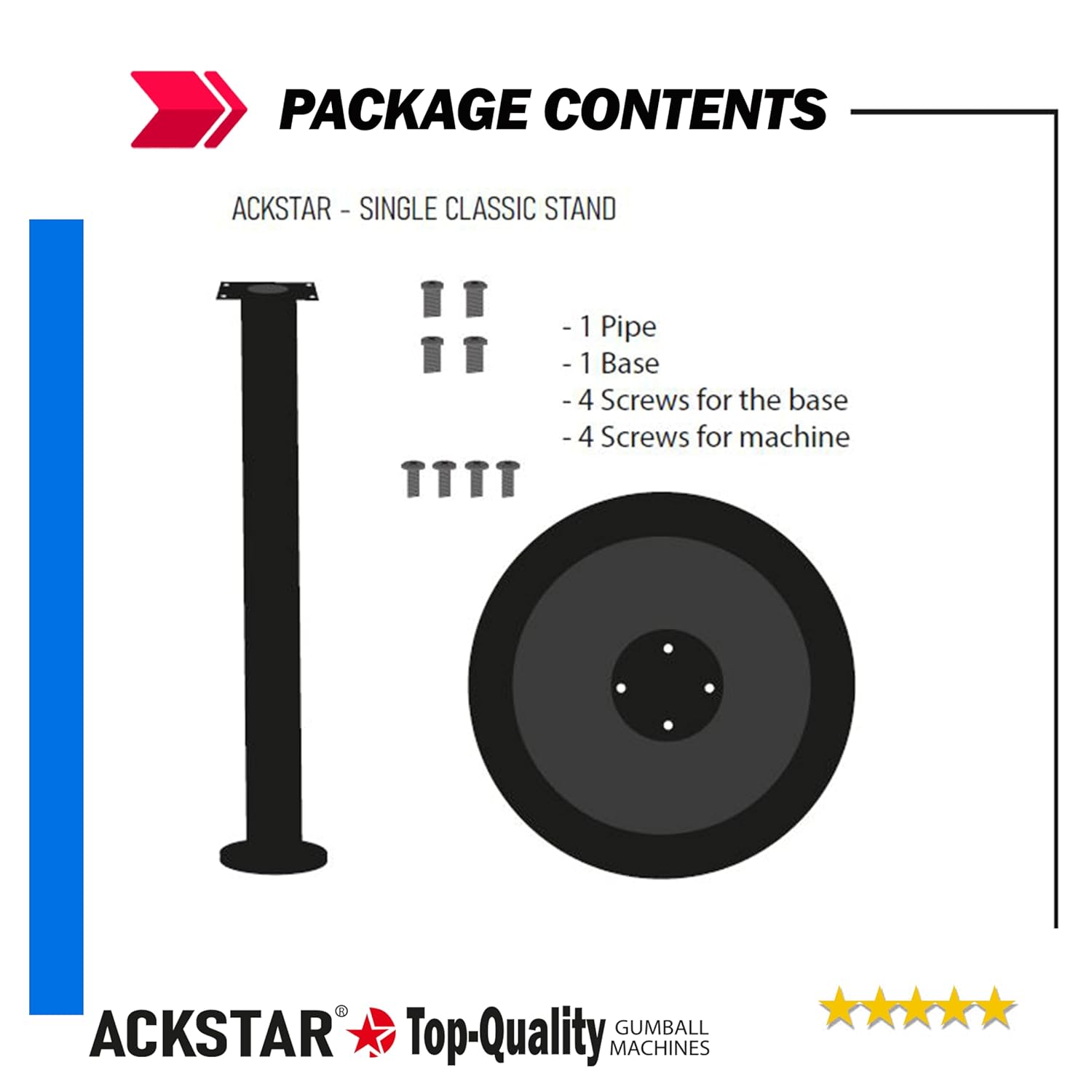 Heavy-duty Excellent quality and long lasting: Don`t let your machines look bad because of a damaged, rusted, stained or peeling paint stand. Make your gumball machines look great with a new stand that enhances them.