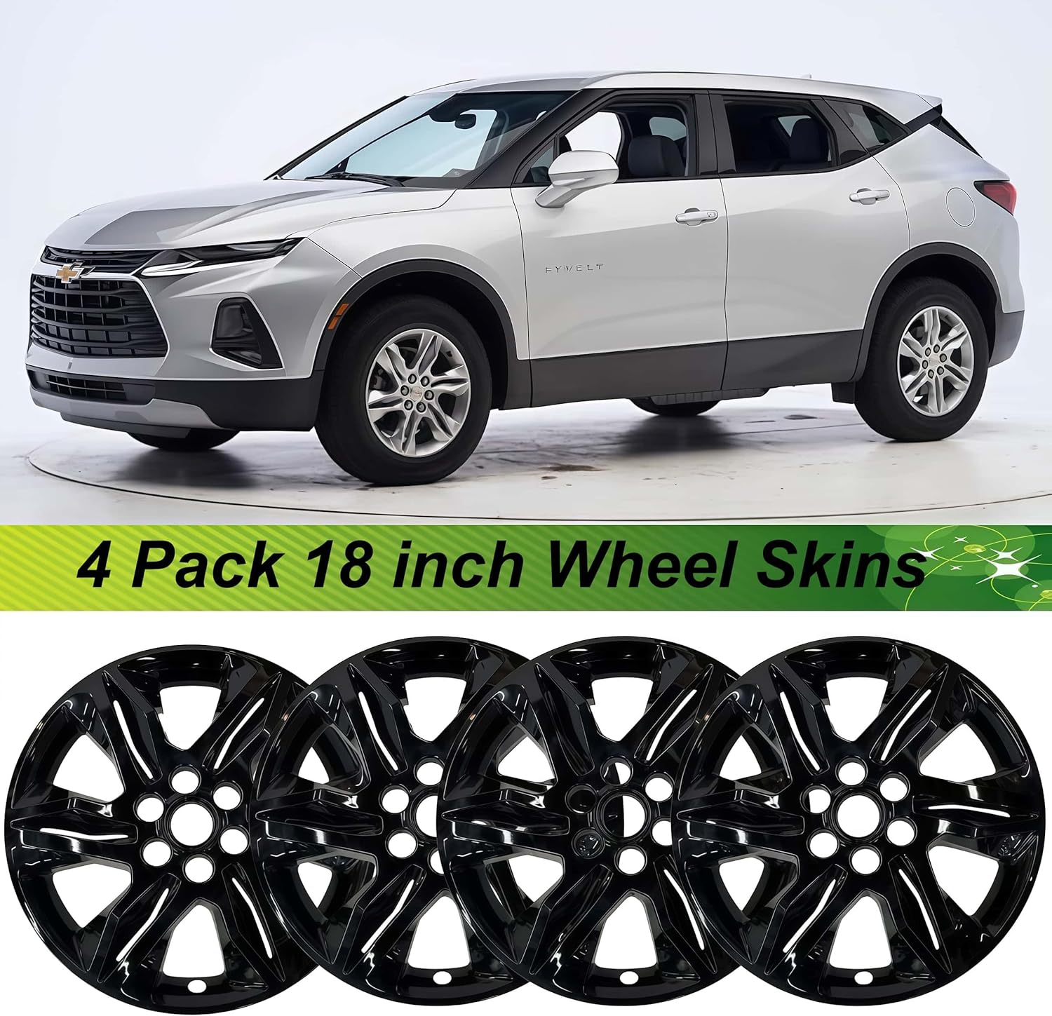 18-inch Wheel Skins Compatible with Ford Chevy Blazer 2019 2020 2021 2022 ;Set of 4 Pack Wheel Covers;Glossy Black