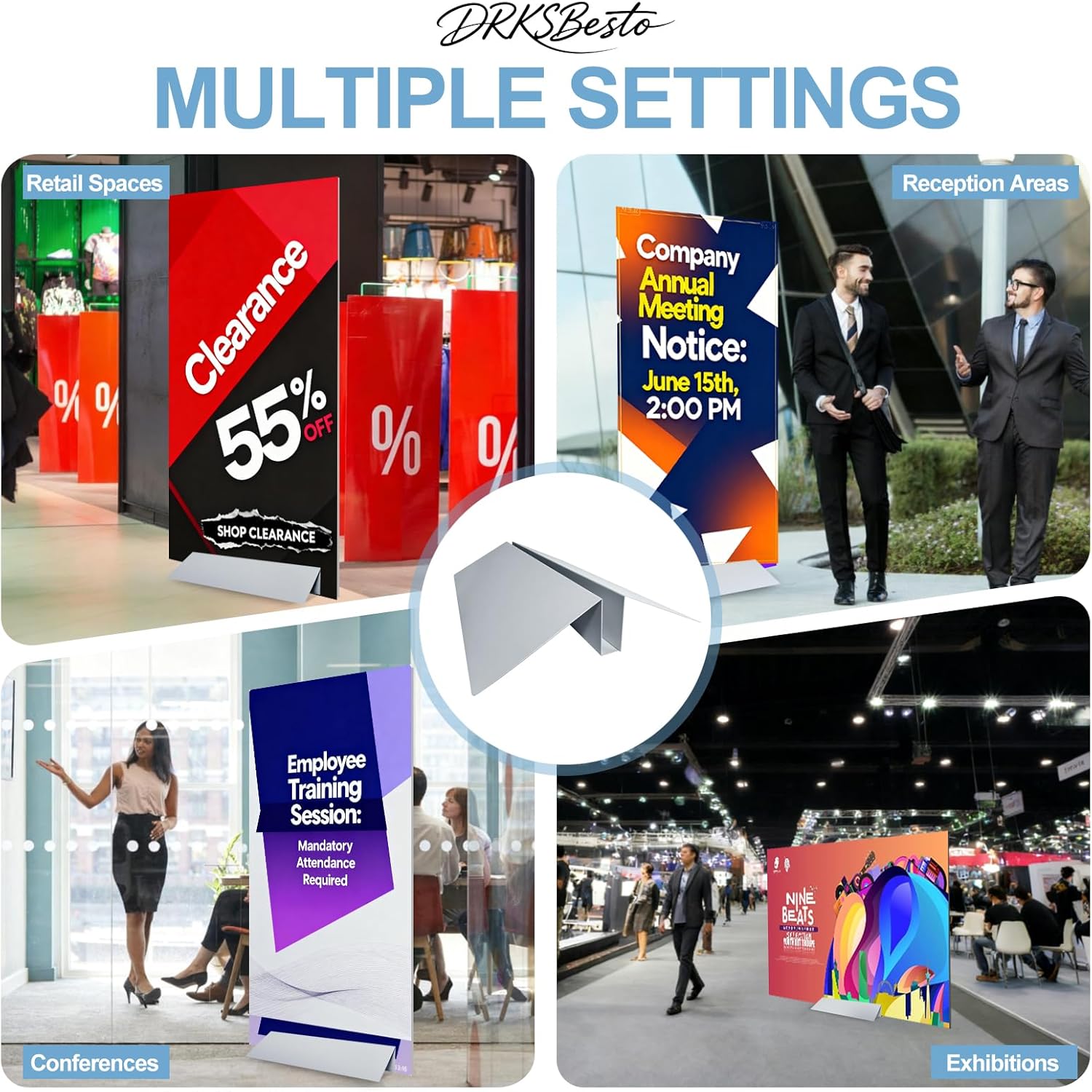 🏪【Versatile Design for Multiple Sites】: Not only for floor displays, this metal floor sign stand holder can be placed on tables or countertops, suitable for conferences, retail spaces, reception areas, and exhibitions.