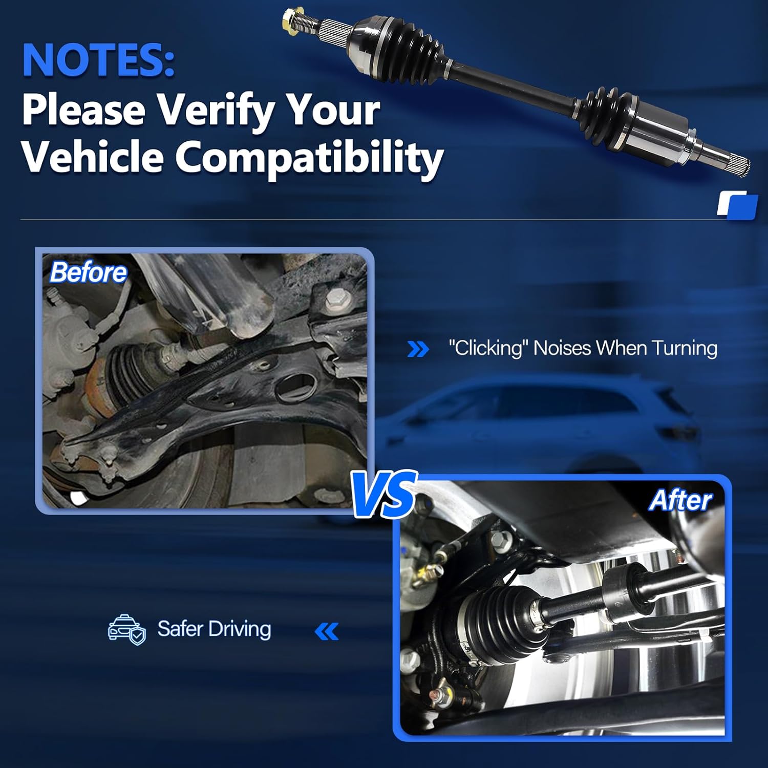 【CV Joint OE Number&Kit Includes】:OEM part number: NCV10510, NCV10639. 2x Front Driver and Passenger Side CV Axle Shaft (Left and Right CV Axle Shaft).