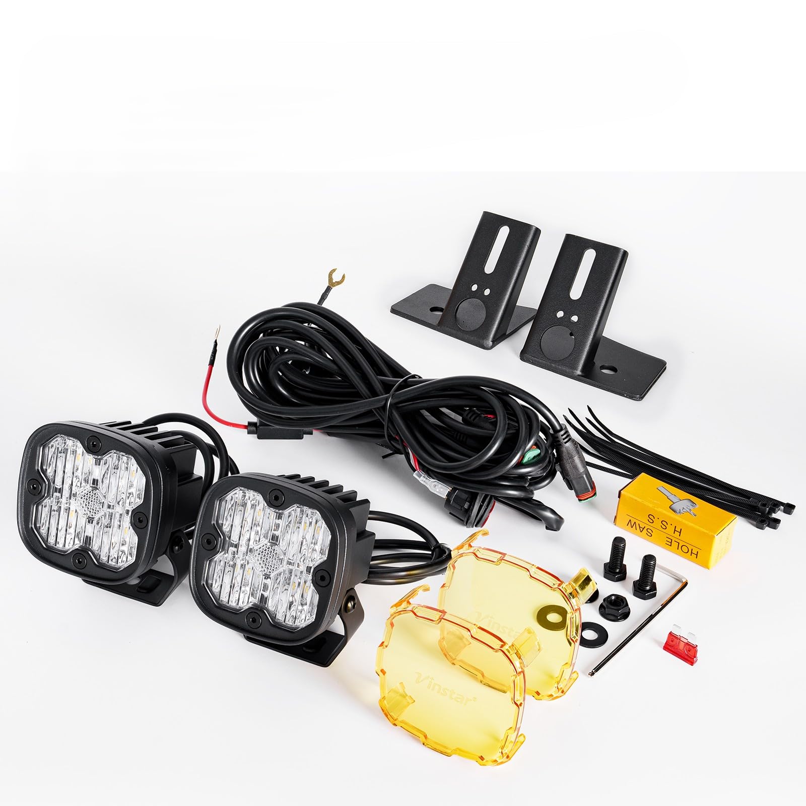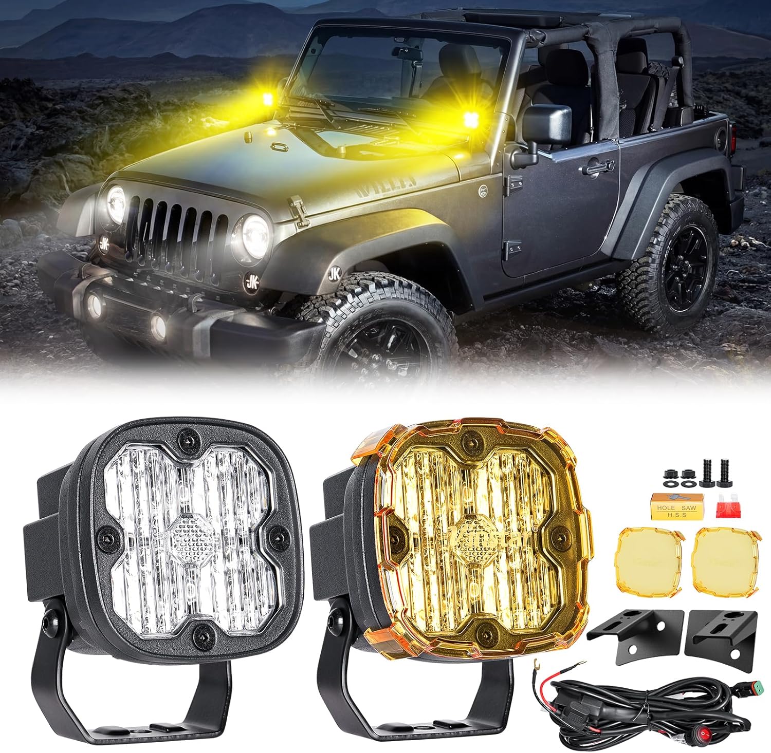 Dual-Use Amber & White Lights: Includes 2 yellow lenses. Easily switch between crisp white light for general use and amber light for better penetration in fog, dust, or snow, reducing glare.