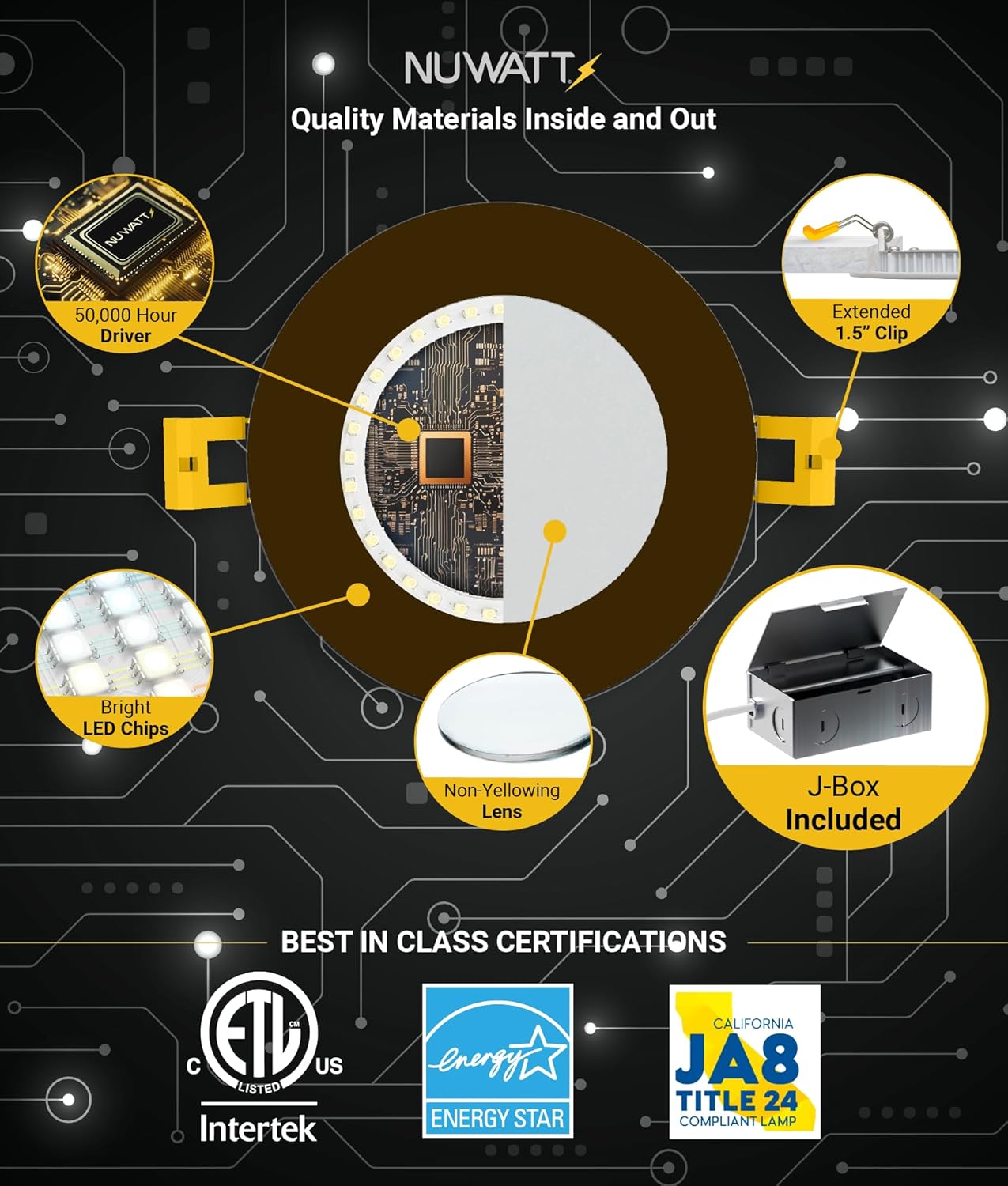 HD Color Accuracy: Illuminate your space with superior CRI90 color accuracy using NuWatt Ultra Thin Wafer Recessed Lighting, ensuring vibrant and true to life lighting. A higher standard compared to other recessed light fixtures on the market that are CRI80.