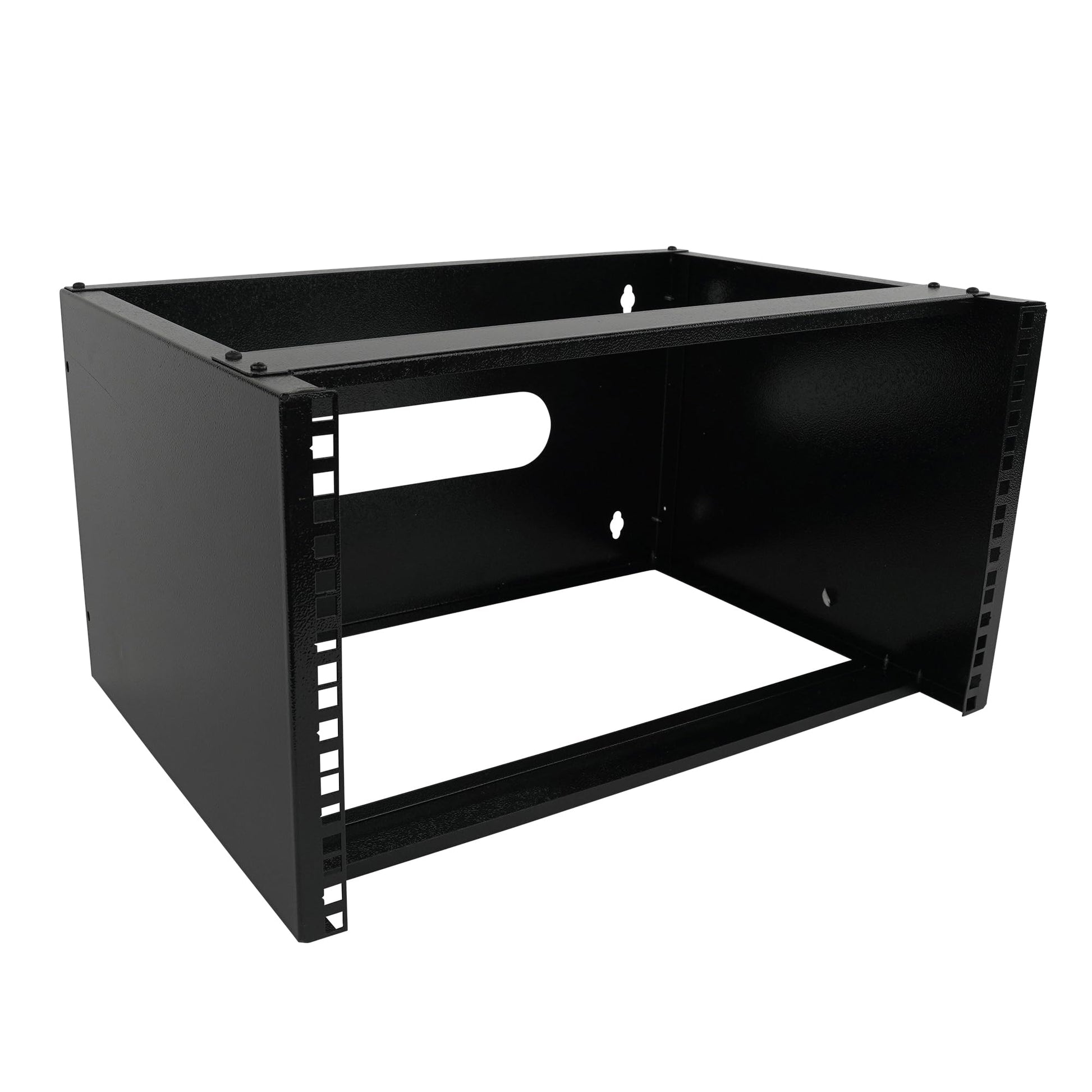 6U WALL-MOUNT OPEN FRAME SERVER RACK: Low-profile 2-post open frame network rack supports up to 6U of networking and IT equipment, providing efficient wall-mounted organization for patch panels, switches, and shallow devices