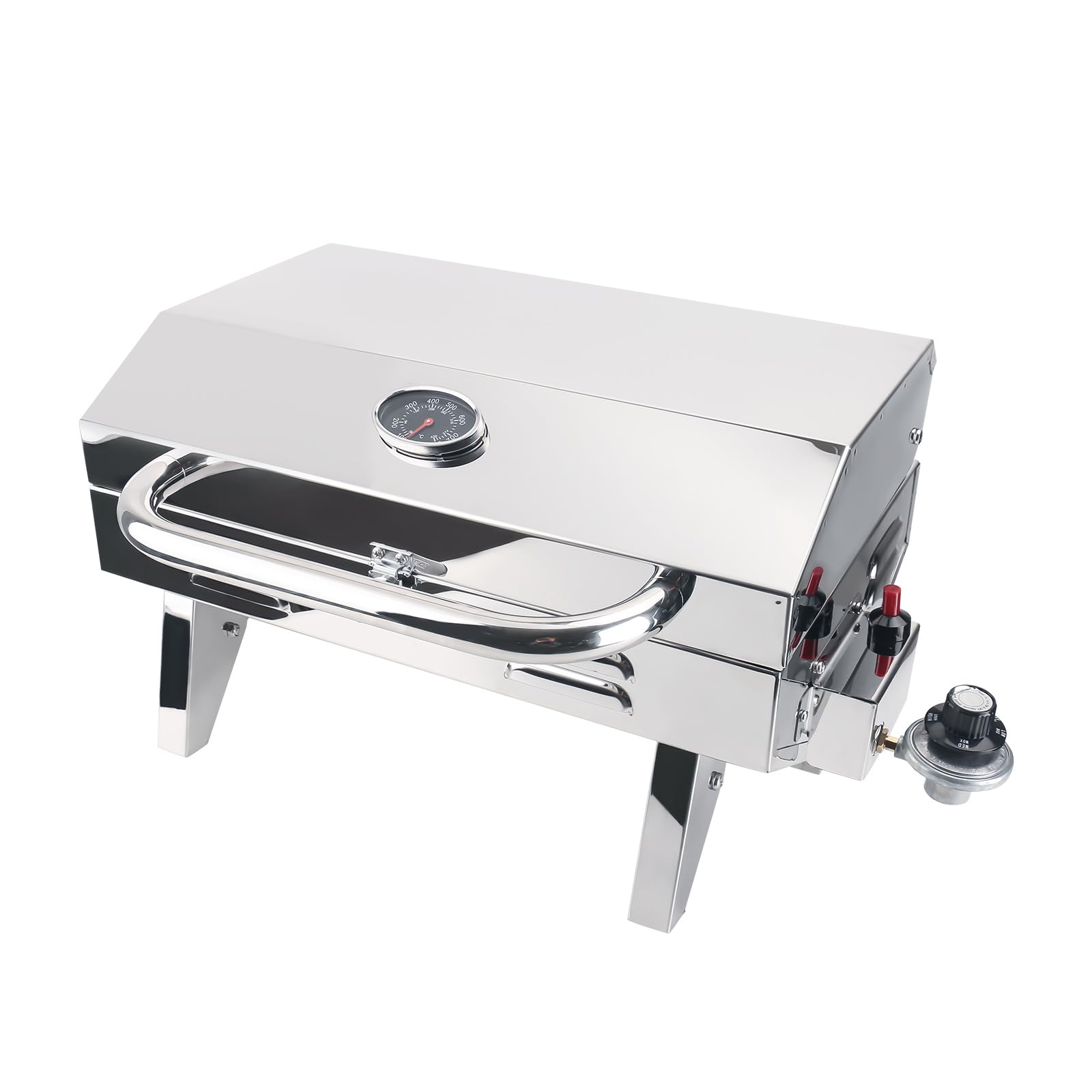 Tabletop Gas Grill, 304 Stainless Steel Marine Grills, NO ROD HOLDER MOUNT, Portable Propane BBQ for Boats & Tailgating & Camping, Built in Thermometer (Grill)