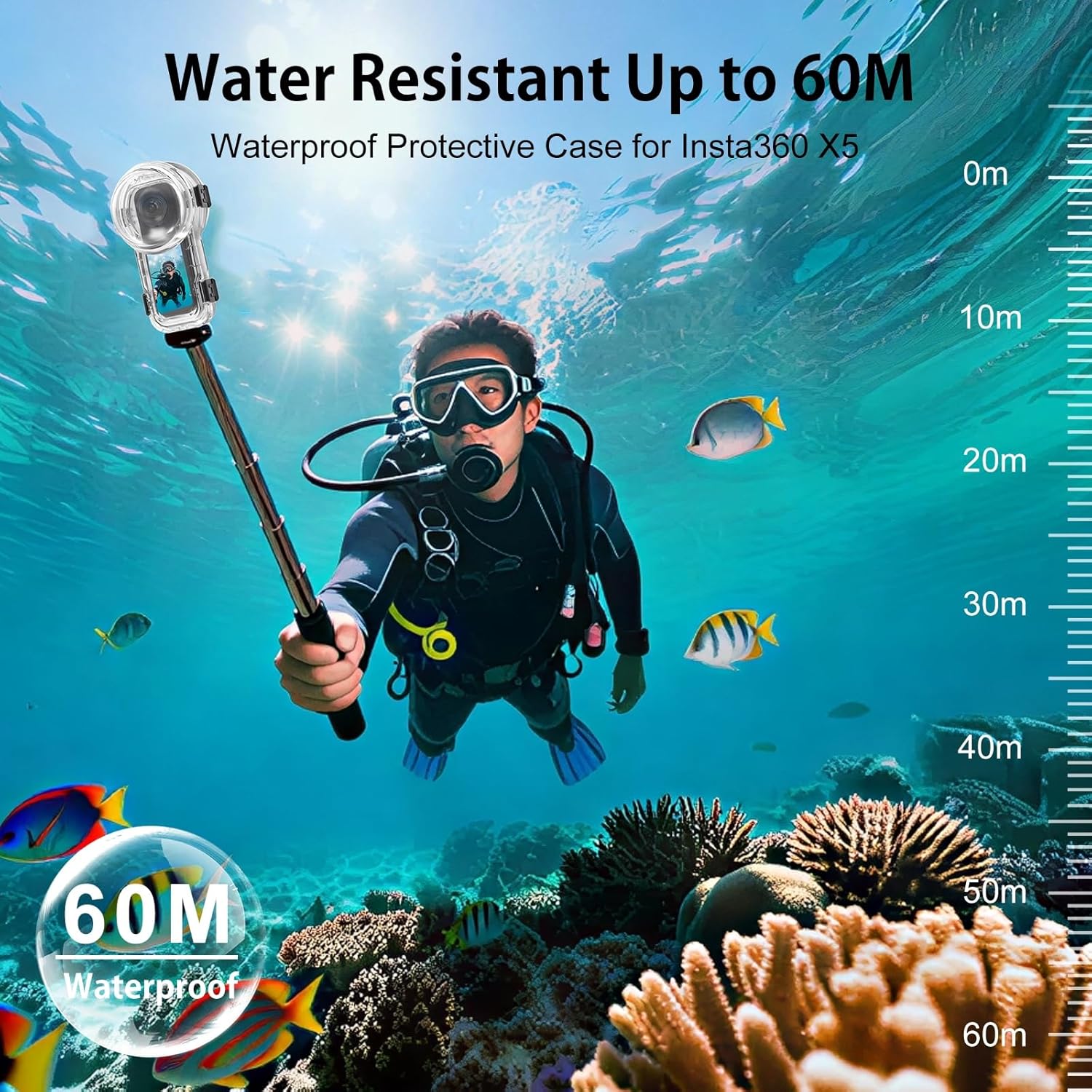 Waterproof Diving Case 60m/197ft for Insta360 X5, Quick Release Housing for Underwater Photography & Action Camera Protection