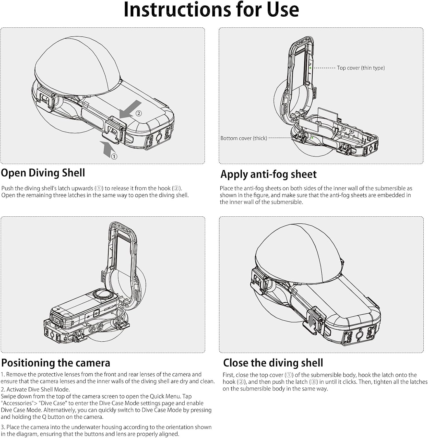 【60m Waterproof for Deep Diving】:Engineered for underwater enthusiasts, this premium diving shell offers an impressive 60-meter waterproof depth, making it ideal for deep diving, snorkeling, and other water sports. Fully sealed and invisible during use, it ensures your camera stays protected while capturing stunning underwater footage without compromise